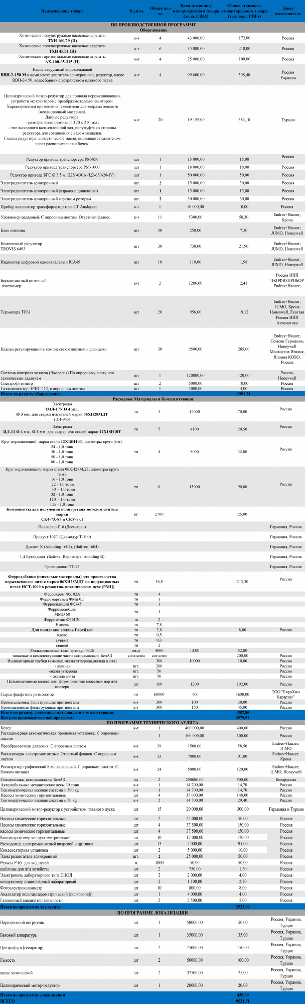 Information about the import of raw materials, materials, components and equipment